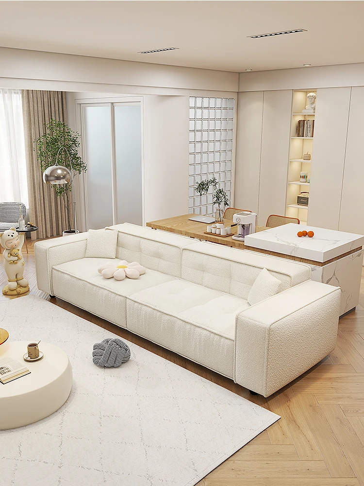 Cozy Nordic Cream Tofu Couch - Vintage Style Block Sofa for Small Spaces, Perfect for Home Living Rooms, Stylish Lambswool Texture, Trendy and Chic Design