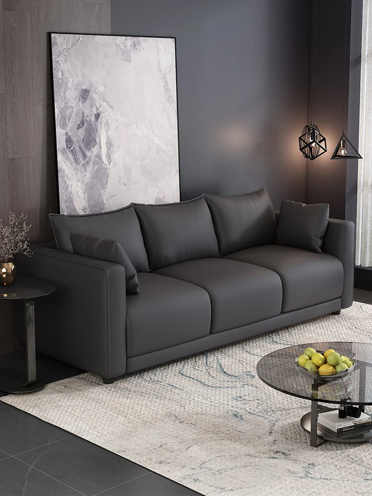 Black Bull Cat Claw Leather Sofa - Italian Minimalist Design for Small Living Rooms, Modern Chic, Trendy Light Luxury, Tofu Block Couch