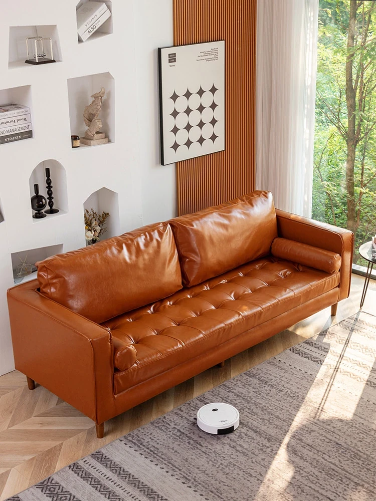 Nordic Minimalist Luxury Leather Sofa – Stylish Compact Couch for Small Apartments, Living Rooms, Bedrooms, and Offices – Vintage-Inspired Design, Modern Elegance
