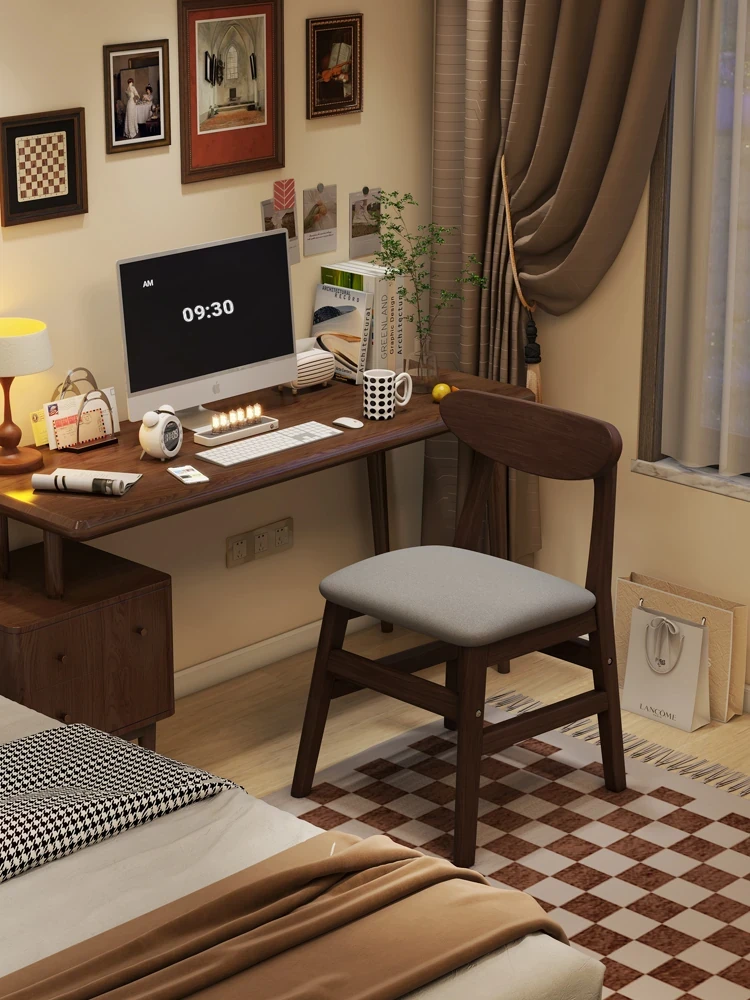 Solid Wood Chair for Home Office, Study Desk, and Bedroom - Comfortable Upholstered Dining and Makeup Chair, Perfect for Computer Use and Dining Room Setup.