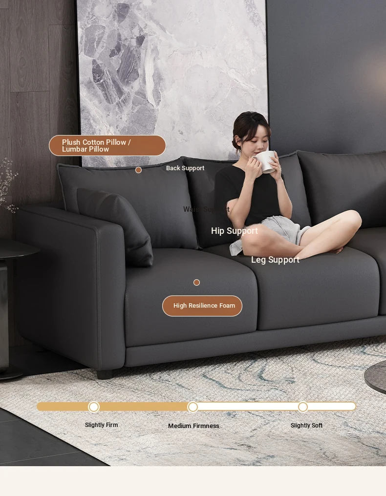 Nordic Minimalist Double-Sized Sofa for Small Apartments - Ideal for Living Rooms, Offices, and Showrooms - Stylish Leather Sofa for Cozy Spaces