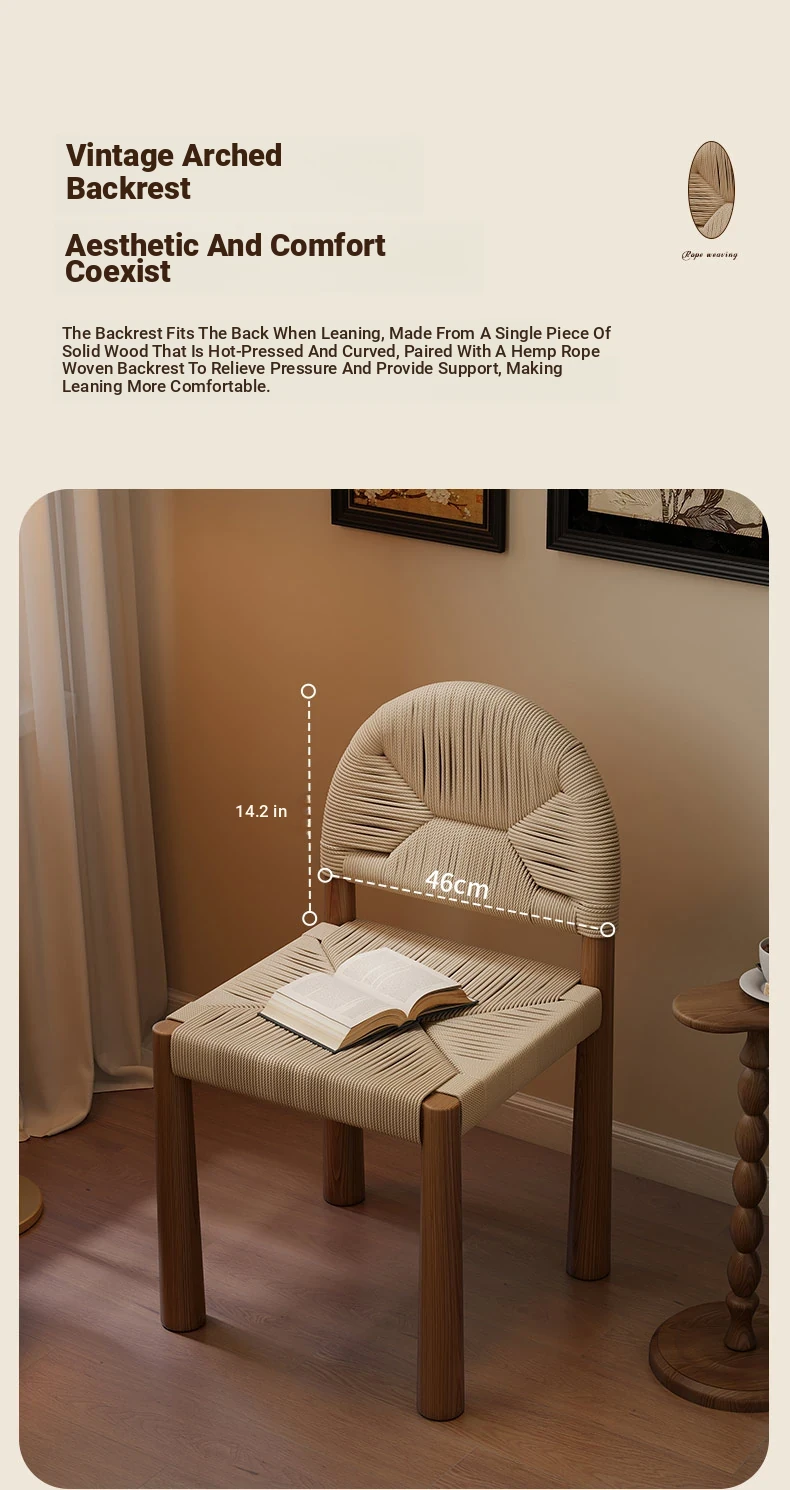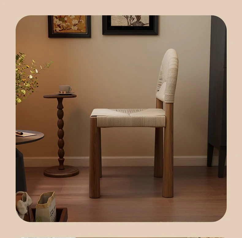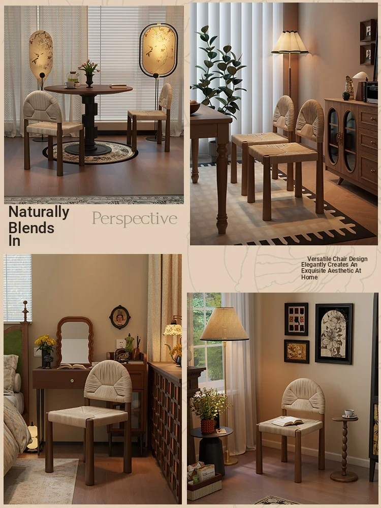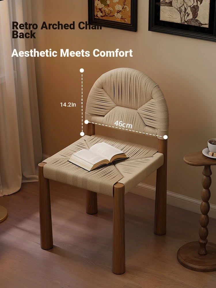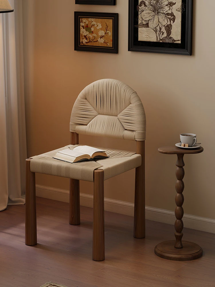 フレンチヴィンテージ 中古無垢材製 バックレストダイニングチェア 編み込みデザイン 書斎や化粧台にも最適 バルコニー向きのリラックスチェア 和の美を楽しむ侘び寂びスタイル