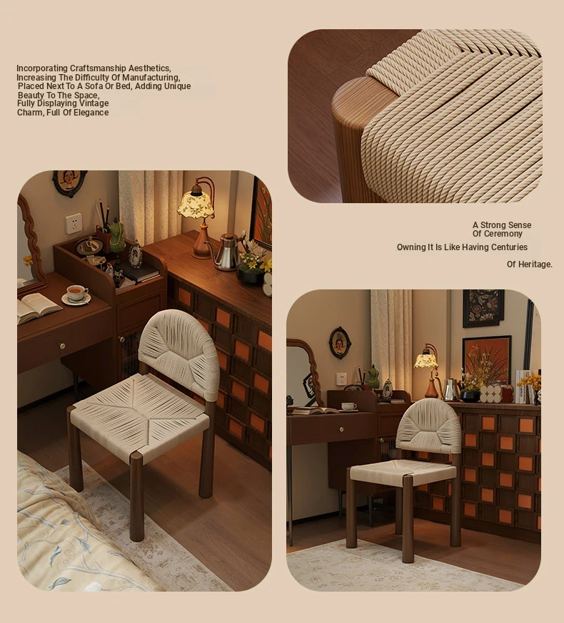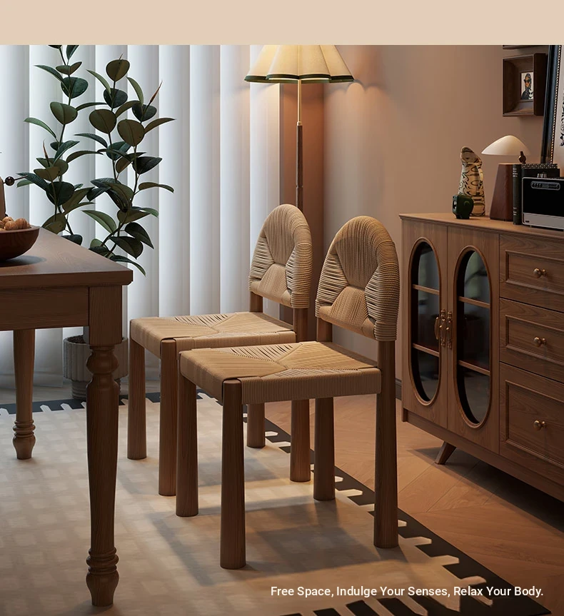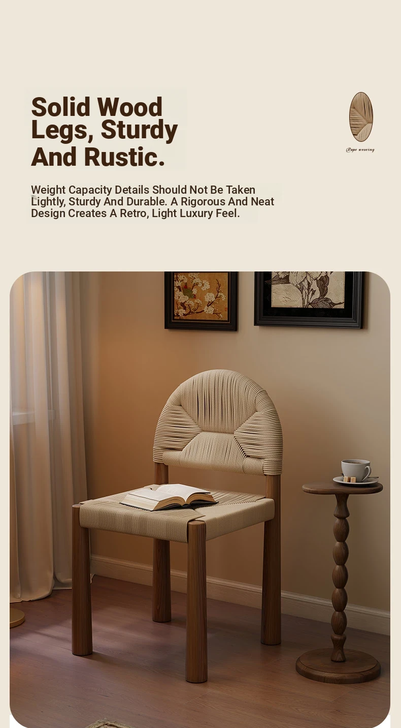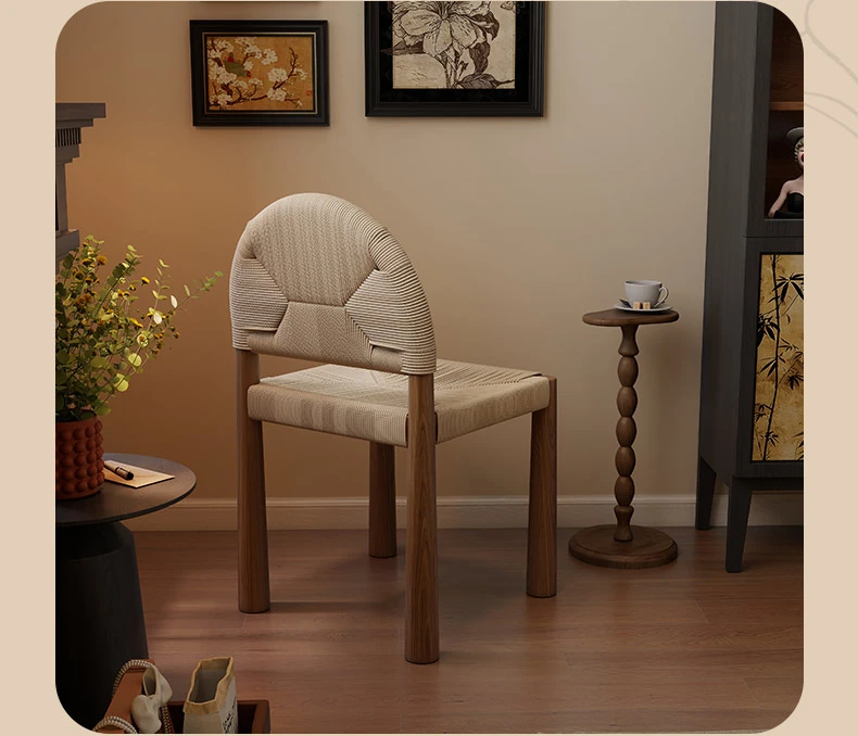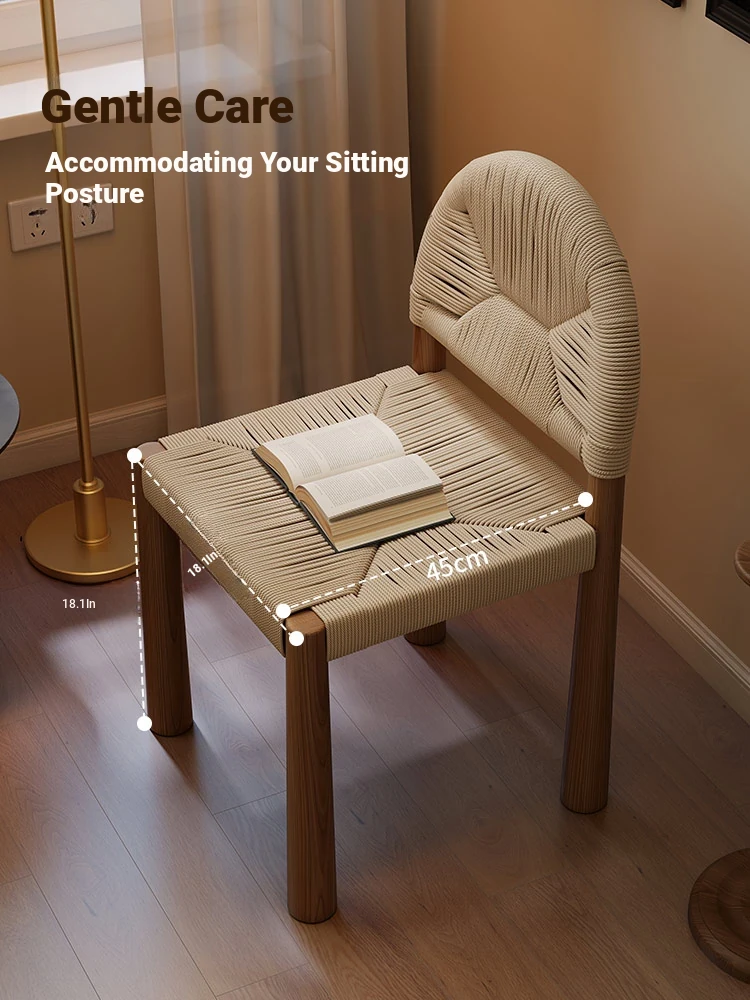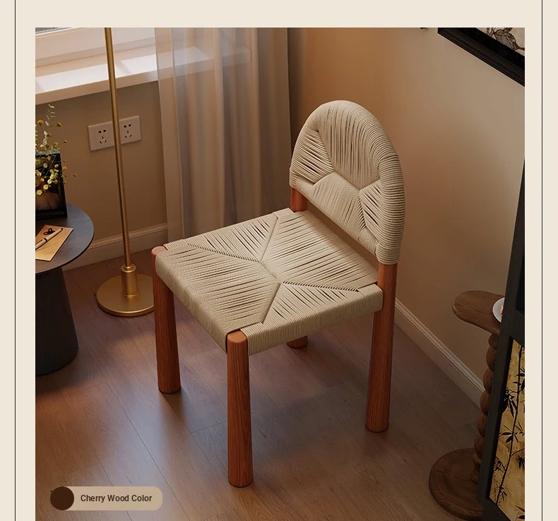 フレンチヴィンテージ 中古無垢材製 バックレストダイニングチェア 編み込みデザイン 書斎や化粧台にも最適 バルコニー向きのリラックスチェア 和の美を楽しむ侘び寂びスタイル