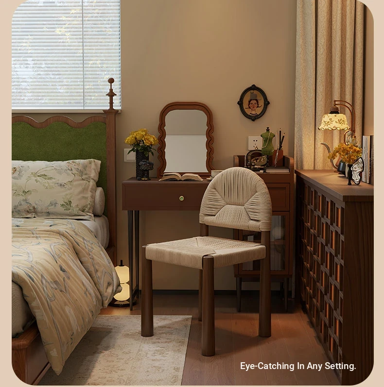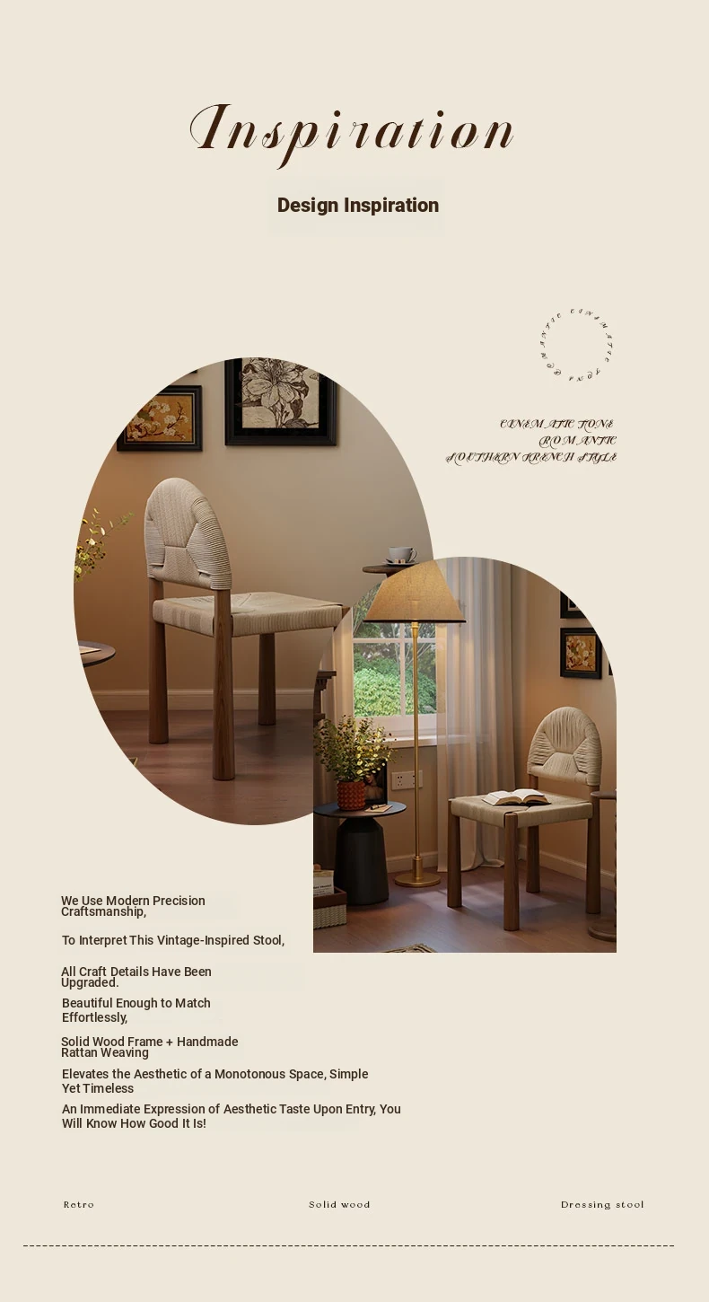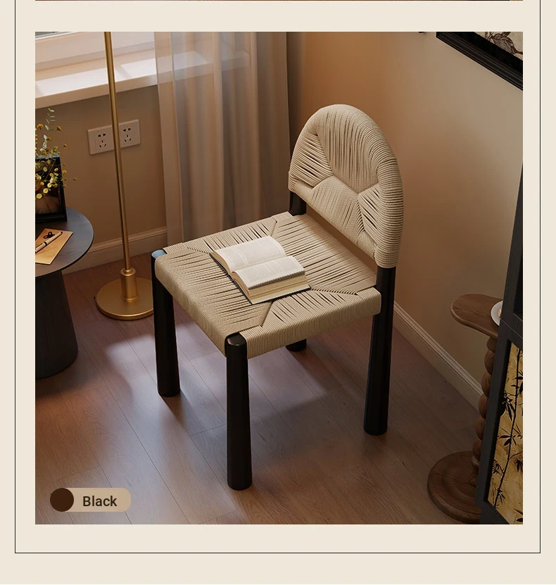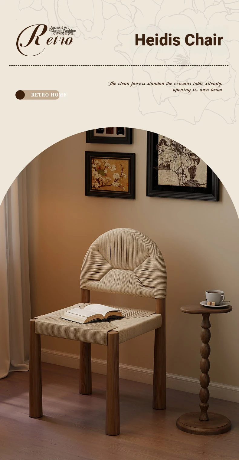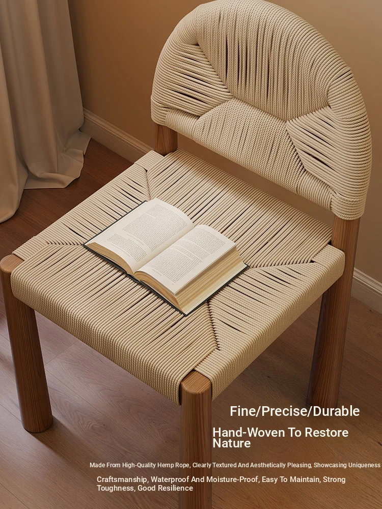 フレンチヴィンテージ 中古無垢材製 バックレストダイニングチェア 編み込みデザイン 書斎や化粧台にも最適 バルコニー向きのリラックスチェア 和の美を楽しむ侘び寂びスタイル