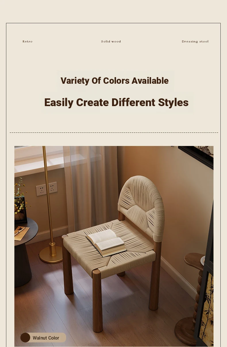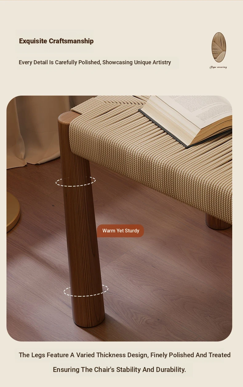 1本(組立済み-工具不要)ウォールナット色【手作りロープ編み+無垢木フレーム】